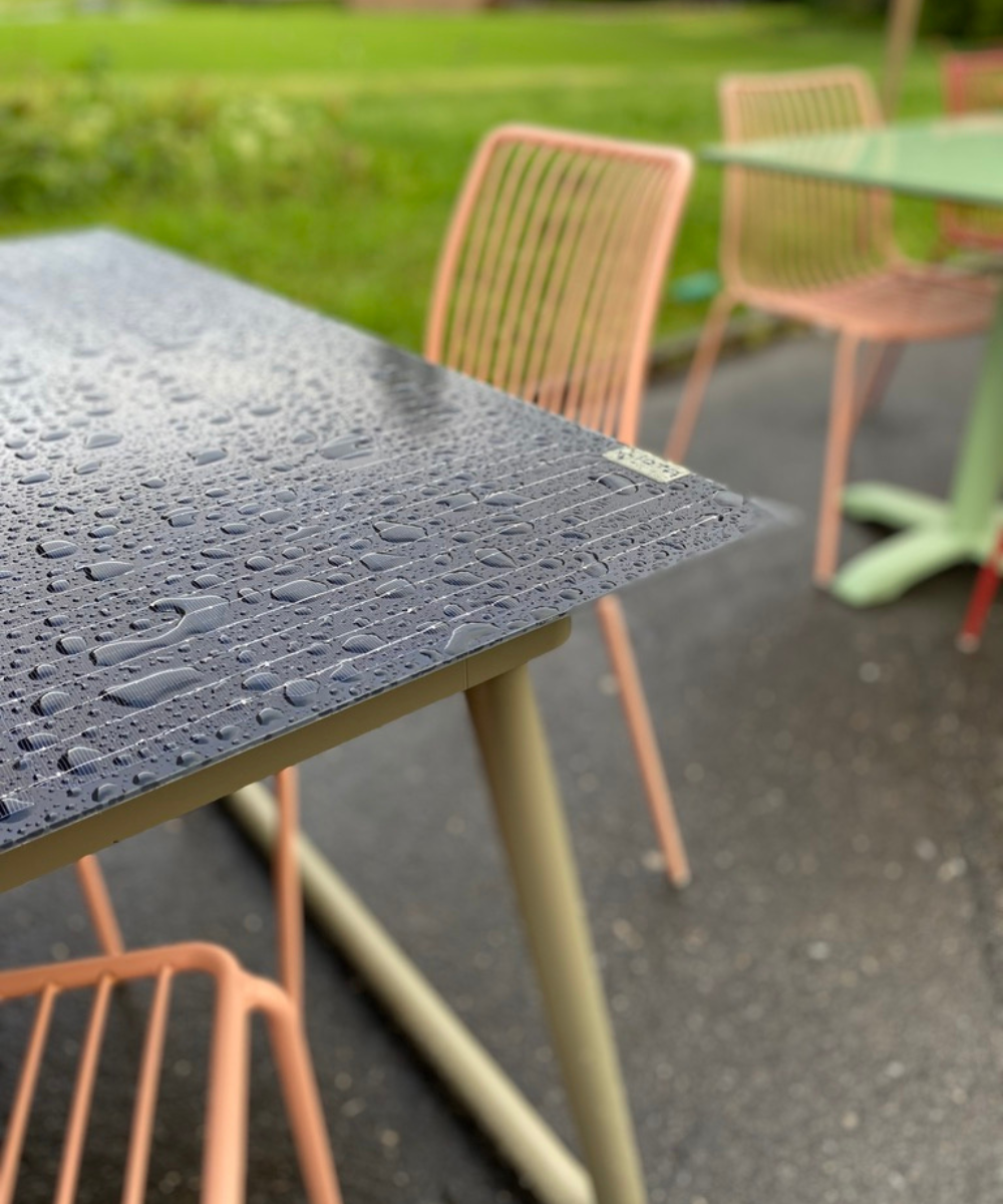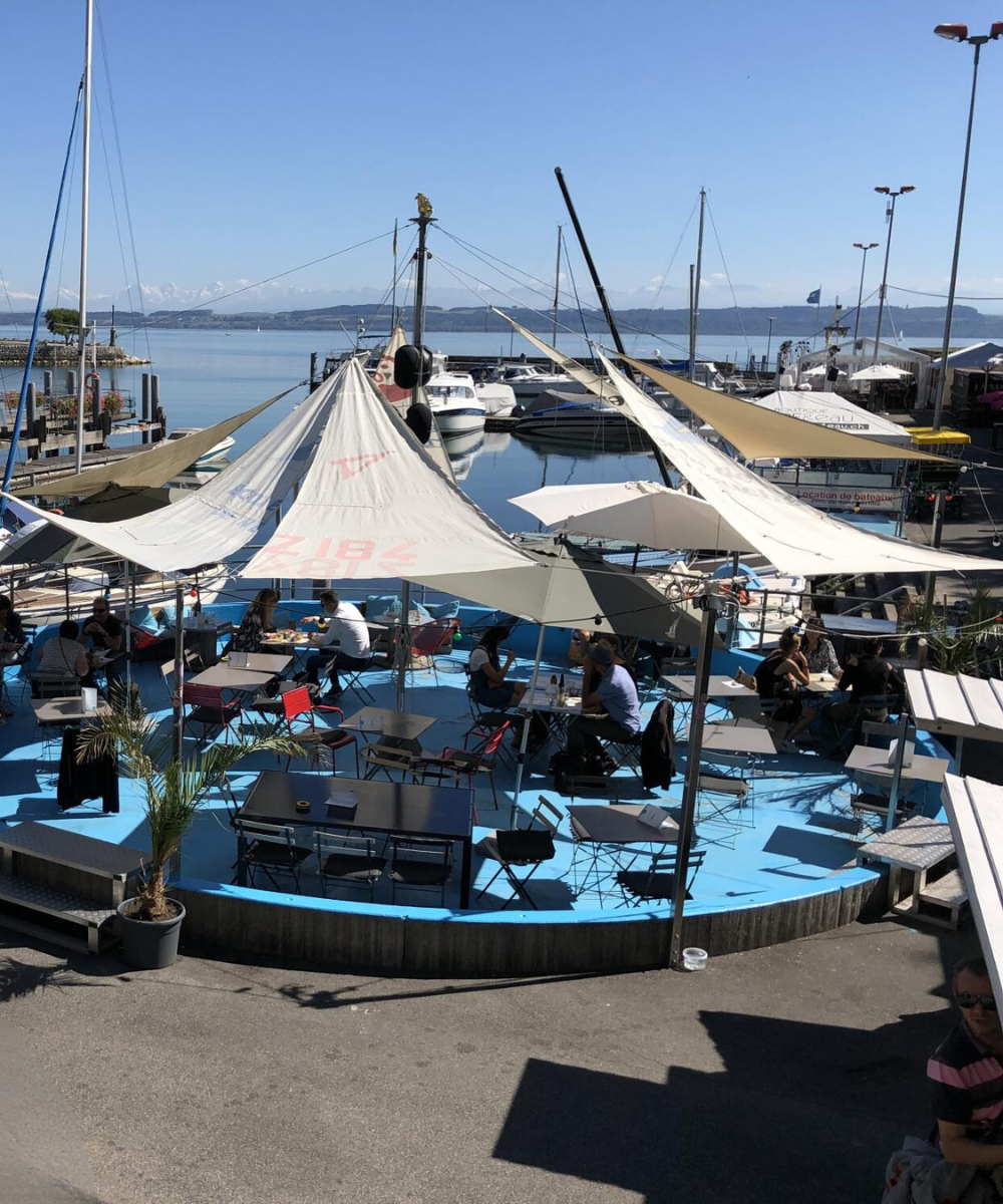 Le Bassin Bleu est un restaurant idéalement situé au port de Neuchâtel, profitant d'une magnifique exposition plein Sud. Quoi de mieux que d'y installer des tables PT One IOTA?